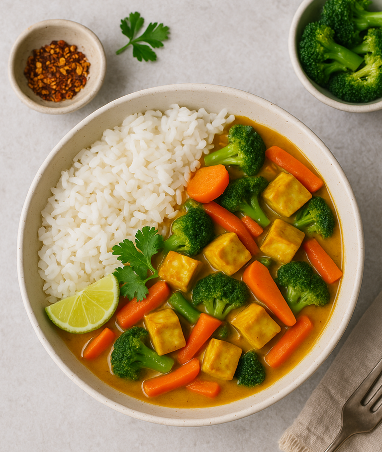 A warm and creamy coconut curry with fresh vegetables, herbs, and authentic spices. Mild but flavorful. Ready in 25 minutes.